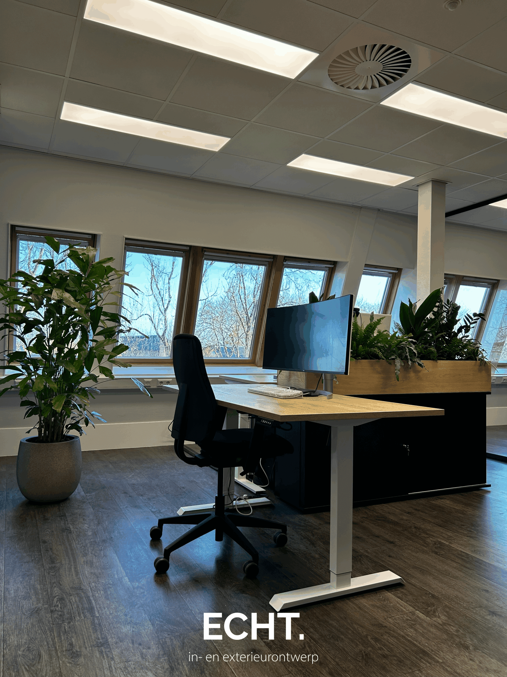 “Het vernieuwde kantoor is echt strak geworden. De vergaderruimte is een representatieve plek waar ons bedrijf goed herkenbaar is door het logo op de muur en de merchandise in de open kast. De ruimtes met onze bureaus zijn overzichtelijk en prettig om in te werken. Vooral de plantenbakken met groen zijn echt heel gaaf geworden!”