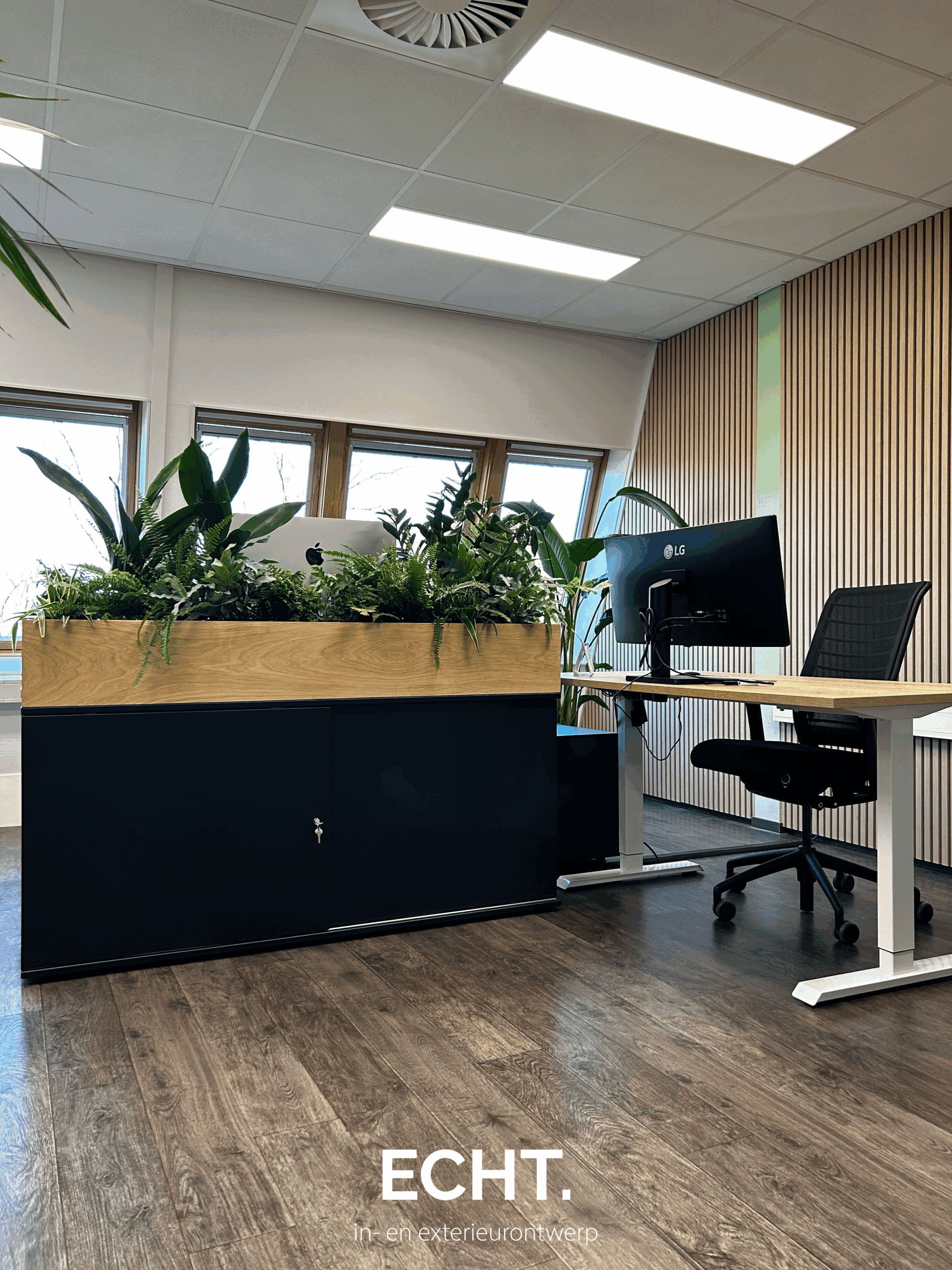 Soorten planten gecombineerd in twee plantenbakken voor een groene werkomgeving