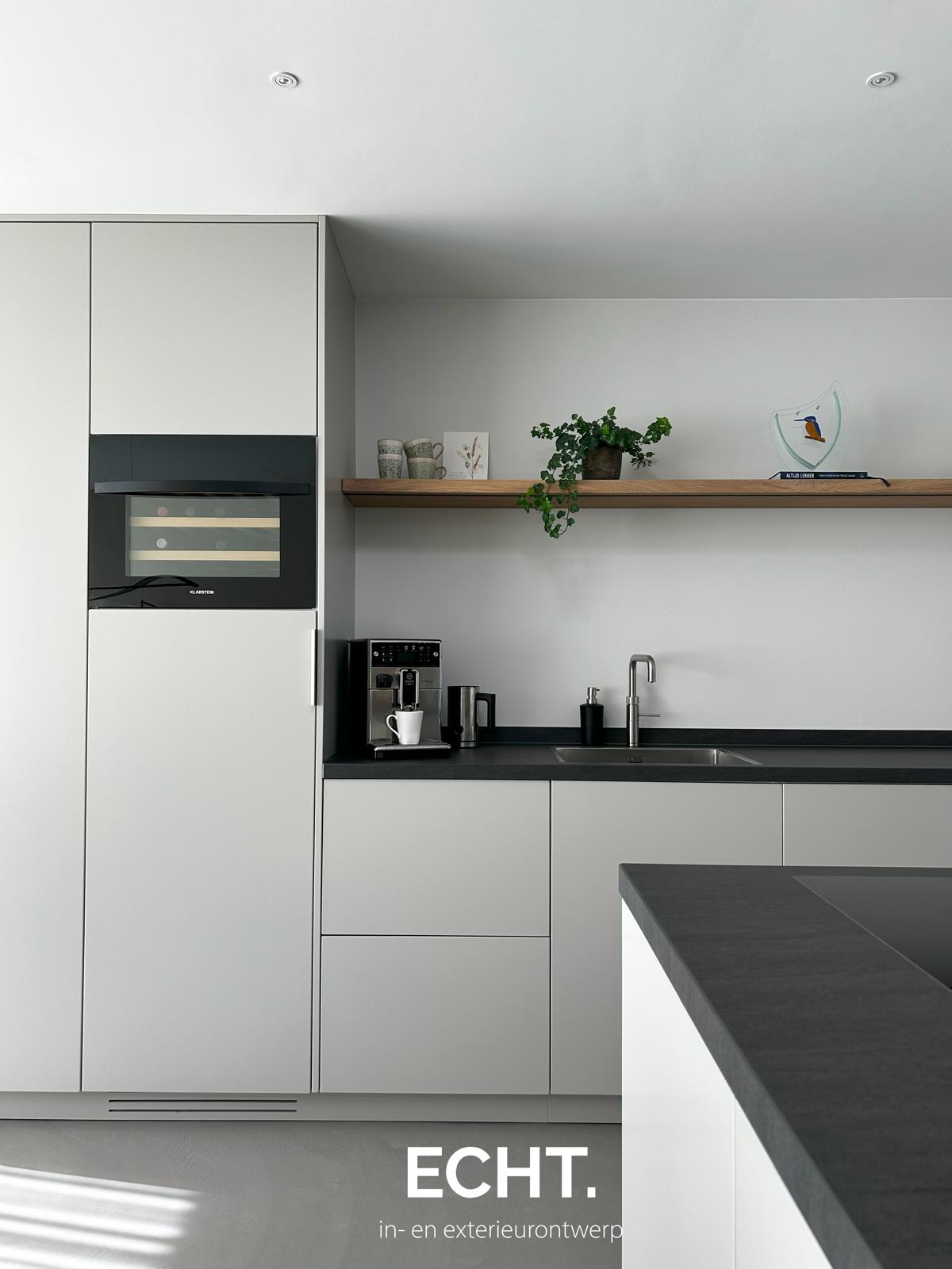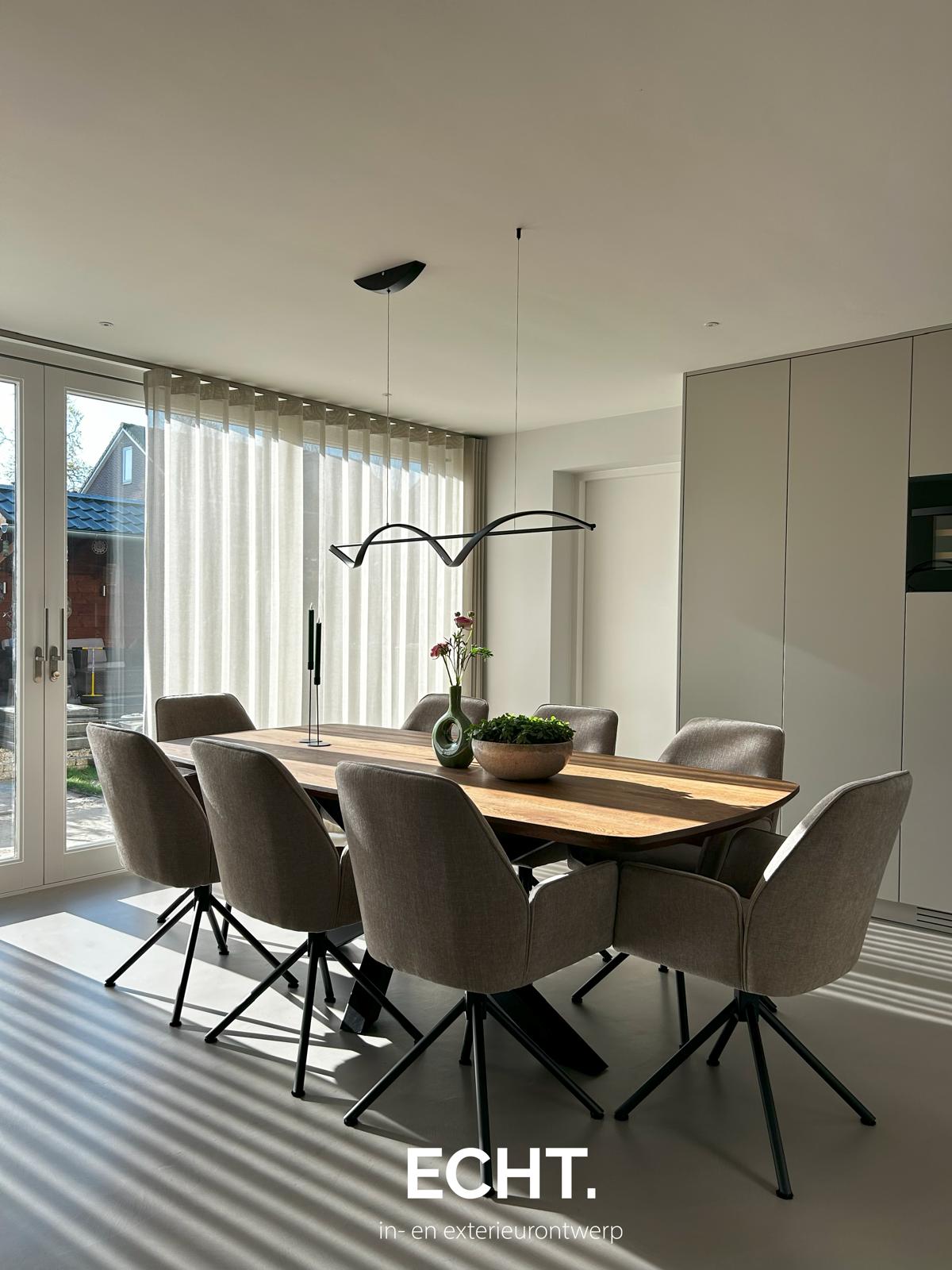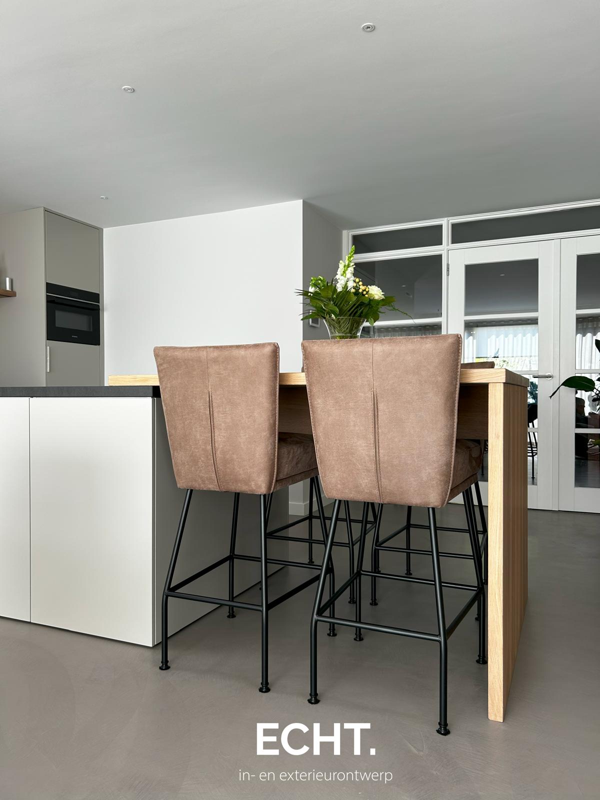 De verbouwde woonkeuken straalt warmte en harmonie uit. Een stijlvolle combinatie van natuurlijke materialen, warme tinten en lichte kleuren vormen samen een evenwichtige basis die rust en balans creëert. Maatwerkelementen en diverse zitplekken maken de ruimte uitnodigend om te borrelen en samen te eten met familie en vrienden. Dankzij de royale schuifpui loopt de woonkeuken naadloos over in de tuin, waardoor binnen en buiten met elkaar verbonden zijn.
