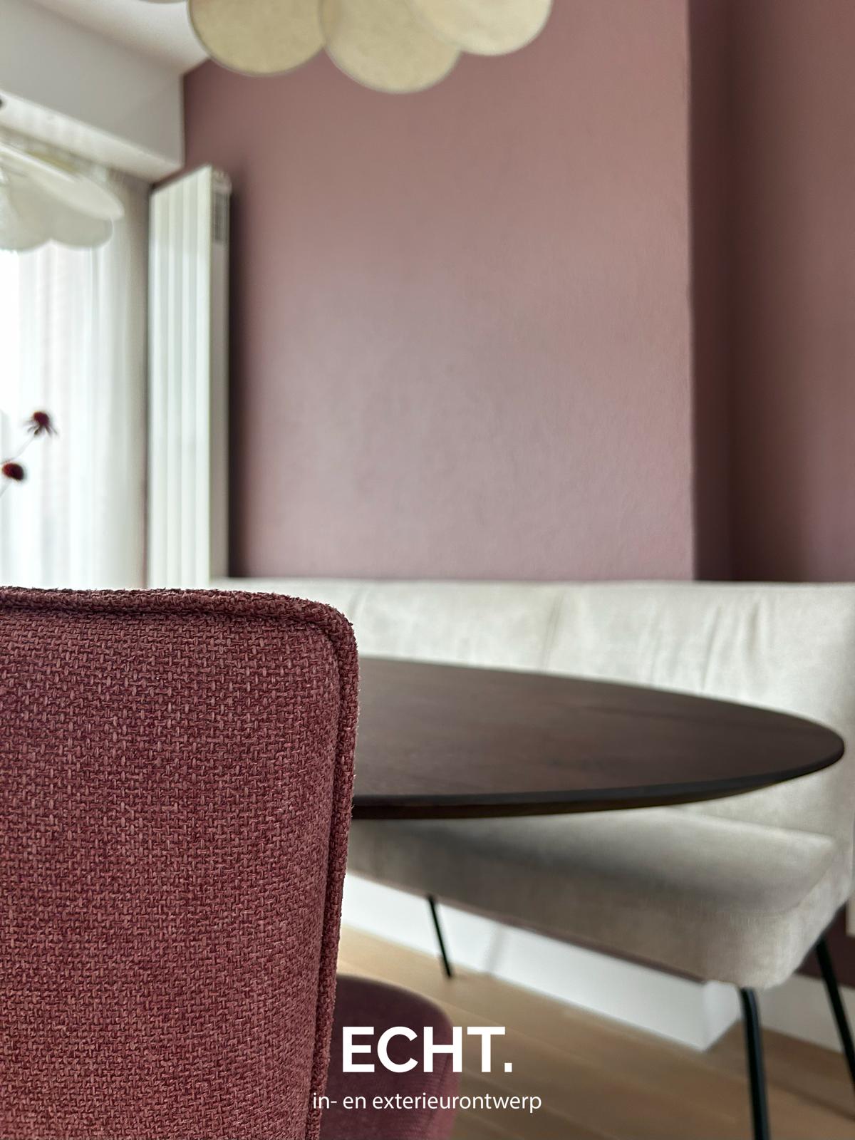 De eethoek vormt het hart van dit interieur – een plek waar samen eten centraal staat. We hebben gekozen voor een royale eettafel voor minimaal zes personen, waar makkelijk stoelen bijgezet kunnen worden voor meer zitplekken. Zo ontstaat ruimte voor gezelligheid, lange diners en waardevolle momenten met familie en vrienden.