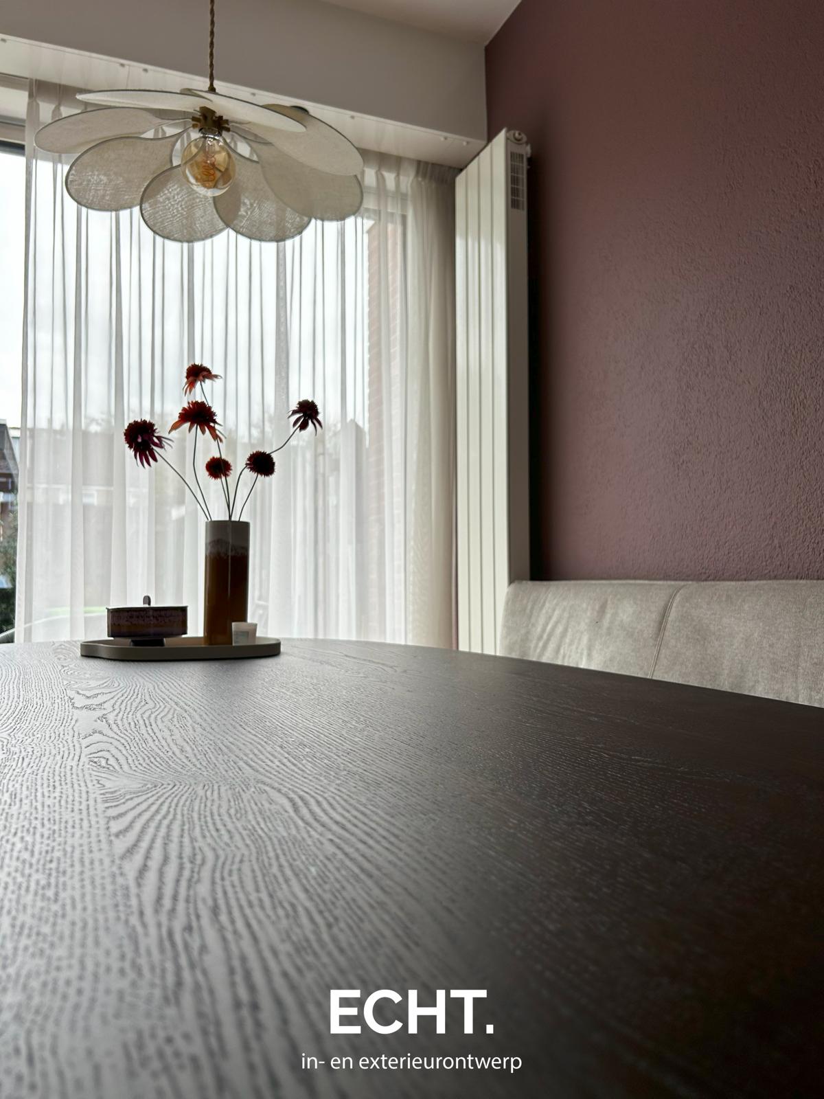 Bestaande houten vloer die perfect past bij de nieuwe uitstraling van de eethoek en woonkamer