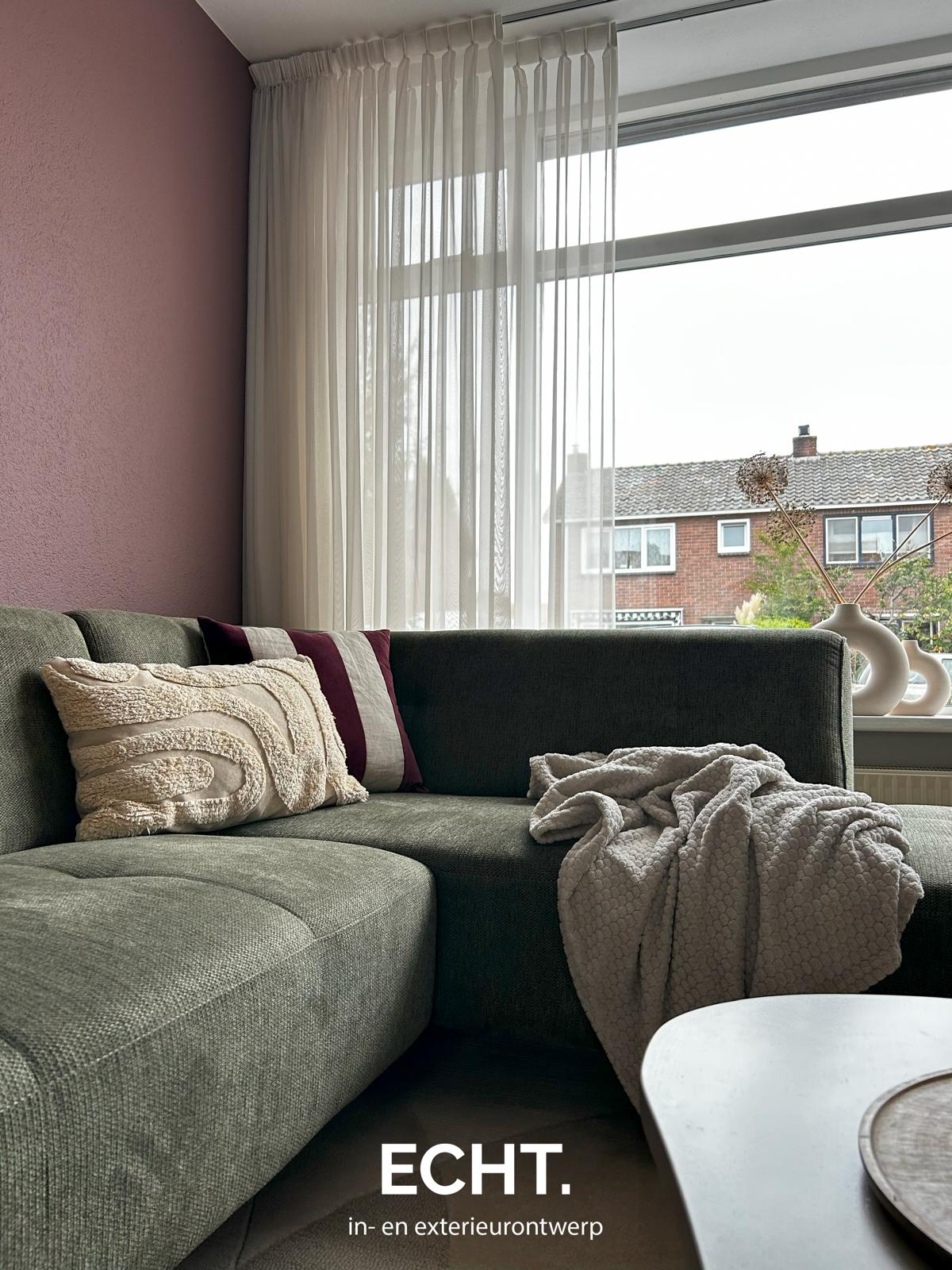 “Onze woonkamer en eethoek voelen direct comfortabel en gezellig. De royale hoekbank in combinatie met het unieke vloerkleed vormen een echte eyecatcher en nodigen uit om lekker samen te ontspannen. De eethoek is voor ons écht de plek om met vrienden te borrelen en spelletjes te doen. Daarnaast is er voldoende opbergruimte voor de spullen van de kinderen en de open vakken geven precies de juiste plek voor persoonlijke items en accessoires. De zorgvuldig gekozen details maken het helemaal af – het interieur voelt echt als ons eigen thuis.”