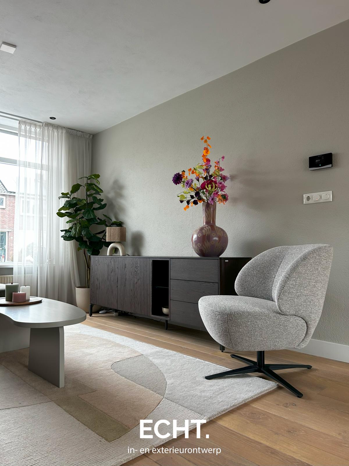 Het resultaat is een eigentijds geheel met een kalme uitstraling en een subtiel stoer randje – precies in lijn met de stijl van de bewoners.